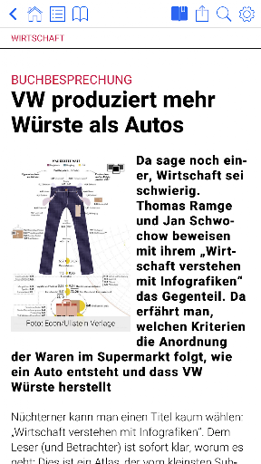 • Artikel merken: beim erneuten Öffnen einer Ausgabe oder der Application wird der zuletzt gelesene Artikel aufgerufen